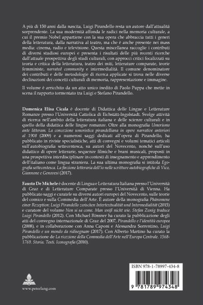 A più di 150 anni dalla nascita, Luigi Pirandello resta un autore dall¿attualità sorprendente. La sua modernità affonda le radici nella memoria culturale, a cui il premio Nobel appartiene con la sua opera che abbraccia tutti i generi della letteratura, dalla narrativa al teatro, ma che è anche presente nei mass media: cinema, radio e televisione. Questa miscellanea raccoglie i contributi di diversi studiosi europei e presenta i risultati delle più recenti ricerche dall¿attuale prospettiva degli studi culturali, con approcci critici focalizzati su teoria e critica della letteratura, teatro dei miti, letterature comparate, teorie femministe, narrated community e intermedialità. Il comune denominatore dei contributi e delle metodologie di ricerca applicate si trova nelle diverse declinazioni dei concetti culturali di memoria, rappresentazione e immagine. Il volume è arricchito da un atto unico inedito di Paolo Puppa che mette in scena il rapporto tormentato tra Luigi e Stefano Pirandello.