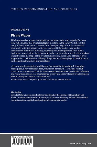 This book reveals the value and significance of pirate radio, with a special focus on local radio stations that broadcast illegally in Poland in the early 90s. It shows that many of them, like in other countries from the region, began as non-commercial, community-oriented initiatives. Several sources of information were used to maximize the potential of the study, especially documents gathered from public institutions, press articles, interviews with radio representatives, and decision-makers who influenced the shape of the broadcasting system. The analysis of these sources supports the conclusion that, although the pirates left a lasting legacy, they lost out in the licensed regime driven by market logic.