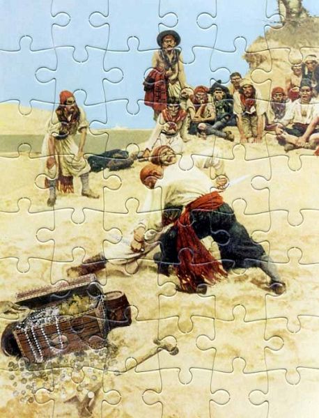 Fluch und Flucht in der Karibik, Schätze und geheimnisvolle Inseln. Lesespaß und Spielvergnügen mit einer Piratengeschichte und 4 Puzzles mit je 48 Teilen.