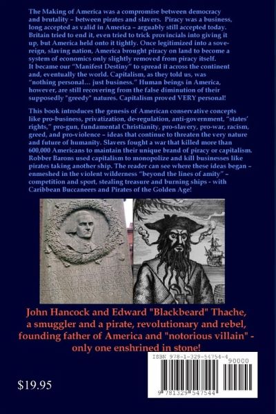 Making America was a compromise between democracy and brutality - between pirates and slavers. Piracy was a business, long accepted as valid in America - arguably still accepted today. America held onto it tightly. Once legitimized into a sovereign, slaving nation, piracy moved to the land and became a system of economics only slightly removed from piracy itself. It became our "Manifest Destiny" to spread it across the continent and, eventually the world. See how the Bahamas and its sister colony Carolina became the pirate stronghold that they did through neglect of its wealthy private owners - how pirates came to Carolina and developed a unique conservative ideology that survives today. See where American conservatism began - from New Providence to the Lower Cape Fear - enmeshed in the violent wilderness "beyond the lines of amity" - competition and sport, stealing treasure and burning ships - with Caribbean Buccaneers and Pirates of the Golden Age!