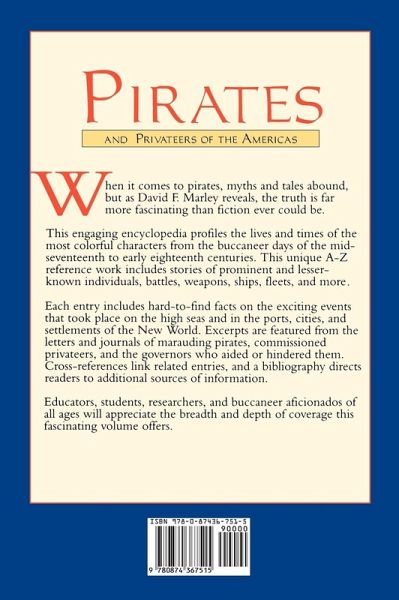 This engaging encyclopedia profiles the lives and times of the most colorful buccaneers from the mid-17th to early 18th centuries. This unique A-Z reference work includes stories of prominent and lesser-known individuals, battles, weapons, ships, fleets, and more. Each entry includes hard to find facts on events that took place on the high seas and in the ports, cities, and settlements of the New World. Cross-references link related entries, and a bibliography directs readers to additional sources of information.