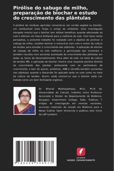 A pirólise de resíduos agrícolas converte-os em carvão vegetal ou biochar, um combustível mais limpo e amigo do ambiente. Uma investigação alargada mostra que o biochar tem efeitos benéficos quando adicionado ao solo e oferece um futuro brilhante para a melhoria do solo. Com base nesta perspetiva, o presente trabalho foi realizado com o objetivo de pirolisar o sabugo de milho, recolher biochar e misturá-lo com solo e meios de cultura de tecidos para estudar o crescimento das plântulas. A aplicação de biochar de sabugo de milho no solo melhorou a germinação das sementes e também resultou num aumento acentuado do crescimento das plântulas em todas as fases de desenvolvimento. Para além do solo, no meio de cultura de tecidos MS, a aplicação de biochar mostra uma resposta positiva distinta do crescimento das plantas. Juntamente com os parâmetros de crescimento, o teor de açúcar, proteínas, ADN e clorofila também aumentou nas plântulas quando o biocarvão foi aplicado tanto no solo como no meio de cultura de tecidos. Assim, pode concluir-se que o biochar pode ser tratado como um bom fertilizante orgânico.