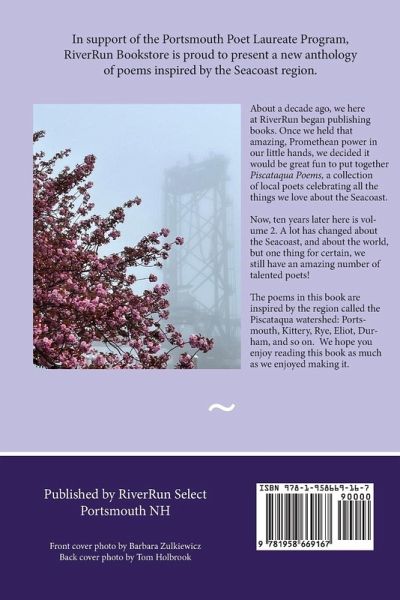 About a decade ago, we here at RiverRun began publishing books. Once we held that amazing, Promethean power in our little hands, we decided it would be great fun to put together Piscataqua Poems, a collection of local poets celebrating all the things we love about the Seacoast. Now, ten years later here is volume 2. A lot has changed about the Seacoast, and about the world, but one thing for certain, we still have an amazing number of talented poets! The poems in this book are inspired by the region called the Piscataqua watershed: Portsmouth, Kittery, Rye, Eliot, Durham, and so on. We hope you enjoy reading this book as much as we enjoyed making it.