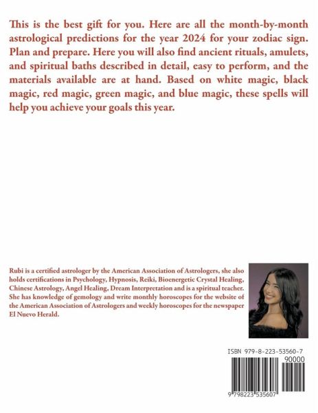This is the best gift for you. Here are all the month-by-month astrological predictions for the year 2024 for your zodiac sign. Plan and prepare. Here you will also find ancient rituals, amulets, and spiritual baths described in detail, easy to perform, and the materials available are at hand. Based on white magic, black magic, red magic, green magic, and blue magic, these spells will help you achieve your goals this year.
