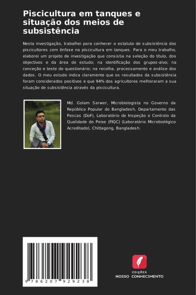 Nesta investigação, trabalhei para conhecer o estatuto de subsistência dos piscicultores com ênfase na piscicultura em tanques. Para o meu trabalho, elaborei um projeto de investigação que consistia na seleção do título, dos objectivos e da área de estudo; na identificação dos grupos-alvo; na conceção e teste do questionário; na recolha, processamento e análise dos dados. O meu estudo indica claramente que os resultados da subsistência foram considerados positivos e que 94% dos agricultores melhoraram a sua situação de subsistência através da piscicultura.