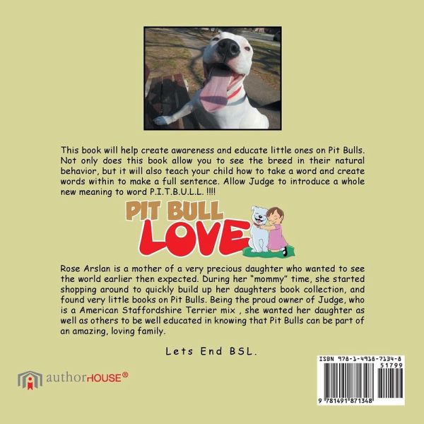 This book will help create awareness and educate little ones on Pit Bulls. Not only does this book allow you to see the breed in their natural behavior, but it will also teach your child how to take a word and create words within to make a full sentence. Allow Judge to introduce a whole new meaning to word P.I.T.B.U.L.L. !!!!