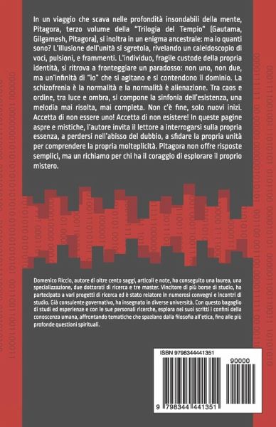 In un viaggio che scava nelle profondità insondabili della mente, Pitagora, nono volume de "L'Opera" e terzo della "Trilogia del Tempio" (Gautama, Gilgamesh, Pitagora), si inoltra in un enigma ancestrale: ma io quanti sono? L'illusione dell'unità si sgretola, rivelando un caleidoscopio di voci, pulsioni, e frammenti. L'individuo, fragile custode della propria identità, si ritrova a fronteggiare un paradosso: non uno, non due, ma un'infinità di "io" che si agitano e si contendono il dominio. La schizofrenia è la normalità e la normalità è alienazione. Tra caos e ordine, tra luce e ombra, si compone la sinfonia dell'esistenza, una melodia mai risolta, mai completa. Non c'è fine, solo nuovi inizi. Accetta di non essere uno! Accetta di non esistere! In queste pagine aspre e mistiche, l'autore invita il lettore a interrogarsi sulla propria essenza, a perdersi nell'abisso del dubbio, a sfidare la propria unità per comprendere la propria molteplicità. Pitagora non offre risposte semplici, ma un richiamo per chi ha il coraggio di esplorare il proprio mistero.