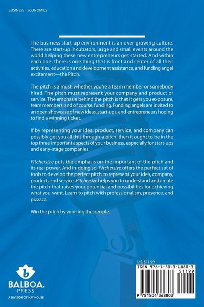 The business start-up environment is an ever-growing culture. There are start-up incubators, large and small events around the world helping these new entrepreneurs get started. And within each one, there is one thing that is front and center of all their activities, education and development assistance, and funding angel excitement-the Pitch. The pitch is a must, whether you're a team member or somebody hired. The pitch must represent your company and product or service. The emphasis behind the pitch is that it gets you exposure, team members, and of course, funding. Funding angels are invited to an open showcase of new ideas, start-ups, and entrepreneurs hoping to find a winning ticket. If by representing your idea, product, service, and company can possibly get you all this through a pitch, then it ought to be in the top three important aspects of your business, especially for start-ups and early-stage companies. Pitchersize puts the emphasis on the importance of the pitch and its real power. And in doing so, Pitchersize offers the perfect set of tools to develop the perfect pitch to represent your idea, company, product, and service. Pitchersize helps you to understand and create the pitch that raises your potential and possibilities for achieving what you want. Learn to pitch with professionalism, presence, and pizzazz. Win the pitch by winning the people.