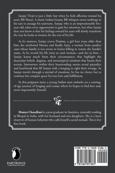 Sanjay Tivari is just a little boy when he feels affection toward his aunt, BB Mausi. A classic Indian beauty, BB whispers sweet nothings in his ears to assuage his tantrums. Sanjay, who is an impressionable five-year-old, takes every opportunity to gain her attention, but what Sanjay does not know is that his feelings toward his aunt will slowly transform the way he looks at women for the rest of his life. As he matures, Sanjay craves Pratima, a girl four years older than him; the newlywed Meena; and finally Anju, a woman from another caste whose family is not averse to honor killing to restore the family's name. As he reveals his life story to each woman-and she to him-Sanjay learns much from their circumstances that highlight the draconian beliefs, dogmas, and stereotypical mindsets that haunt their society. Interwoven within their heartrending stories reveal prejudice and heartbreak that fill Sanjay with a longing to right their wrongs. As Sanjay travels through a myriad of emotions, he has no choice but to continue his complex quest for true love and fulfillment. In this poignant story, a young Indian man embarks on a coming-of-age journey of longing and ecstasy where he hopes to find love and, more importantly, himself.