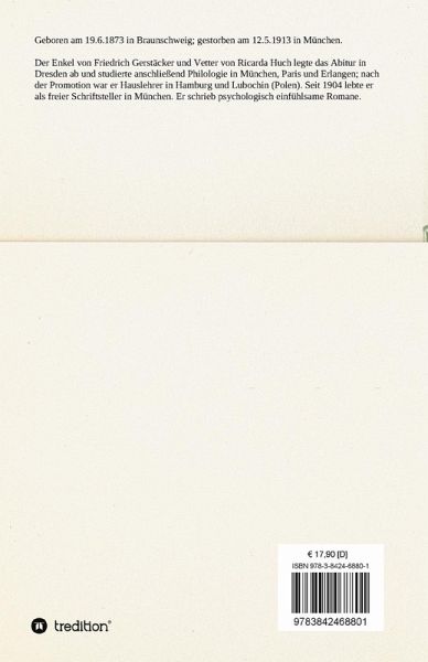 Geboren am 19.6.1873 in Braunschweig; gestorben am 12.5.1913 in München. Der Enkel vonFriedrich Gerstäckerund Vetter von Ricarda Huch legte das Abitur in Dresden ab und studierte anschließend Philologie in München, Paris und Erlangen; nach der Promotion war er Hauslehrer in Hamburg und Lubochin (Polen). Seit 1904 lebte er als freier Schriftsteller in München. Er schrieb psychologisch einfühlsame Romane.