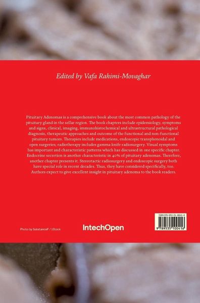 Pituitary Adenomas is a comprehensive book about the most common pathology of the pituitary gland in the sellar region. The book chapters include epidemiology, symptoms and signs, clinical, imaging, immunohistochemical and ultrastructural pathological diagnosis, therapeutic approaches and outcome of the functional and non-functional pituitary tumors. Therapies include medications, endoscopic transphenoidal and open surgeries; radiotherapy includes gamma knife radiosurgery. Visual symptoms has important and characteristic patterns which has discussed in one specific chapter. Endocrine secretion is another characteristic in 40% of pituitary adenomas. Therefore, another chapter presents it. Stereotactic radiosurgery and endoscopic surgery both have special role in recent decades. Thus, they have considered specifically, too. Authors expect to give excellent insight in pituitary adenoma to the book readers.