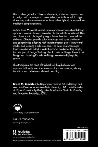 This practical guide for college and university instructors explains how to design and prepare your courses to be adaptable for a full range of learning environments-whether that's online, hybrid, or face-to-face traditional campus teaching. Author Bruce M. Mackh unpacks a comprehensive instructional design approach to curriculum and instruction that is suitable for all modalities and allows you to pivot quickly, regardless of how the course will be delivered. Chapters provide quick takeaways and cover challenges and opportunities, adapting high-impact practices across instructional models and fostering a culture of care. The book also encourages faculty members to adopt a student-centered mindset as they employ the principles of Design Thinking, User Experience Design, Instructional Design, and Learning Experience Design to create a high-quality course. The strategies at the heart of this book will help both new and experienced faculty save time, ensure instructional continuity during transitions, and achieve excellence in teaching.