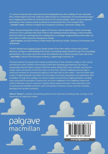 This book examines the popular and critically acclaimedfilms of Pixar Animation Studios in their cultural and historical context.Whether interventionist sheriff dolls liberating oppressed toys (Toy Story)or exceptionally talented rodents hoping to fulfill their dreams (Ratatouille),these cinematic texts draw on popular myths and symbols of American culture. AsPixar films refashion traditional American figures, motifs and narratives forcontemporary audiences, this book looks at their politics - from the frontiermyth in light of traditional gender roles (WALL-E) to the notion of voluntary associations andneoliberalism (The Incredibles). Through close readings, this volume considers theaesthetics of digital animation, including voice-acting and the simulation ofcamera work, as further mediations of the traditional themes and motifs ofAmerican culture in novel form. Dietmar Meinel explores the ways in which Pixarfilms come to reanimate and remediate prominent myths and symbols ofAmericanculture in all their cinematic, ideological and narrative complexity.