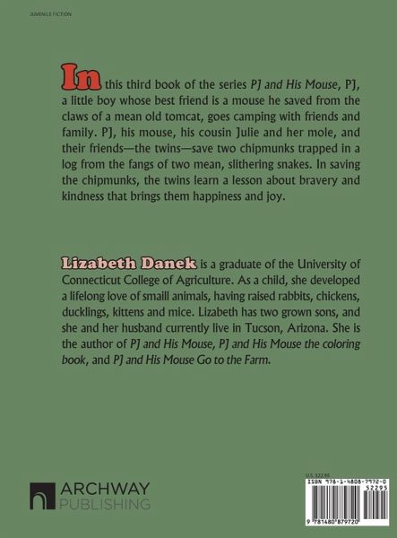 In this third book of the series PJ and His Mouse, PJ, a little boy whose best friend is a mouse he saved from the claws of a mean old tomcat, goes camping with friends and family. PJ, his mouse, his cousin Julie and her mole, and their friends-the twins-save two chipmunks trapped in a log from the fangs of two mean, slithering snakes. In saving the chipmunks, the twins learn a lesson about bravery and kindness that brings them happiness and joy.