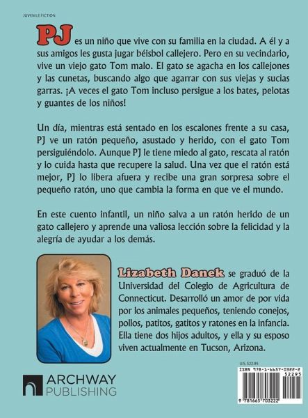 PJ es un niño que vive con su familia en la ciudad. A él y a sus amigos les gusta jugar béisbol callejero. Pero en su vecindario, vive un viejo gato Tom malo. El gato se agacha en los callejones y las cunetas, buscando algo que agarrar con sus viejas y sucias garras. ¡A veces el gato Tom incluso persigue a los bates, pelotas y guantes de los niños! Un día, mientras está sentado en los escalones frente a su casa, PJ ve un ratón pequeño, asustado y herido, con el gato Tom persiguiéndolo. Aunque PJ le tiene miedo al gato, rescata al ratón y lo cuida hasta que recupere la salud. Una vez que el ratón está mejor, PJ lo libera afuera y recibe una gran sorpresa sobre el pequeño ratón, uno que cambia la forma en que ve el mundo. En este cuento infantil, un niño salva a un ratón herido de un gato callejero y aprende una valiosa lección sobre la felicidad y la alegría de ayudar a los demás.
