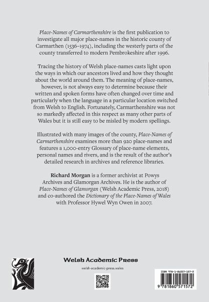 Place-Names of Carmarthenshire is the first publication to investigate all major place-names in the historic county of Carmarthen (1536-1974), including the westerly parts of the county transferred to modern Pembrokeshire after 1996.