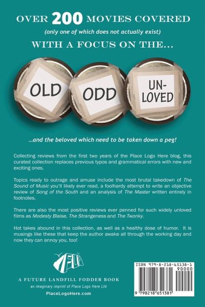 The movie blog nobody reads is now the book no sane person would buy! Over 200 movies covered (only one of which does not actually exist) with a focus on... The old. The obscure. The unloved. ...and the beloved which need to be taken down a peg! Collecting reviews from the first two years of the Place Logo Here blog, this curated compendium replaces previous typos and grammatical errors with new and exciting ones. Topics ready to outrage and amuse include the most brutal takedown of The Sound of Music you'll likely ever read, a foolhardy attempt to write an objective review of Song of the South and an analysis of The Master written entirely in footnotes. There are also the most positive reviews ever penned for such widely unloved films as Modesty Blaise, The Strangeness and The Twonky. Hot takes abound in this collection, as well as a healthy dose of humor. It is musings like these that keep the author awake all through the working day and now they can annoy you, too!