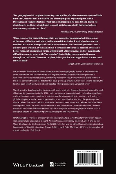 Place is one of the essential moments in any account of geography but it is also one of the most difficult to articulate. In this new edition of a book which has become the standard account of what place is and how it moves us Tim Cresswell provides a user's guide to place which is, at the same time, a considered theoretical account. There is no better means of navigating a notion which is both utterly obvious and yet surprisingly difficult to come to terms with. The book isn't just a highly recommended journey through the thickets of literature on place, it is a genuine starting point for students and scholars alike. Nigel Thrift, University of Warwick