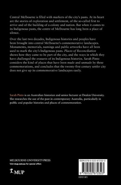 The centre of Melbourne is filled with stories about the city's pasts. Like all of Australia's cities, it is a place that is dominated by markers of the settler-colonial past. Yet when it comes to its Indigenous pasts, the city is mostly a place of silence. Since the 1990s, however, Indigenous histories have been brought into central Melbourne's commemorative landscapes. Monuments, memorials, namings and artworks have all been used to mark the city's Indigenous pasts. These historical markers can be found in the everyday places of parks, roads, bridges and thoroughfares. Taken together, they are an incursion into the city's commemorative landscapes. Places of Reconciliation tells the story of the introduction of official commemorations of Indigenous peoples and histories into the heart of Melbourne since 2000. It explains how they came to be part of the city, and the ways in which they have challenged the erasure of its Indigenous histories. In telling this story, the book also examines the kind of places that have been made and unmade by these commemorations, and how we might understand them as public historical projects in the early decades of the twenty-first century.