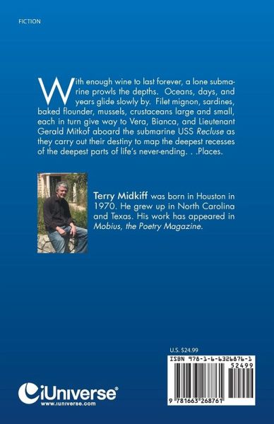 With enough wine to last forever, a lone submarine prowls the depths. Oceans, days, and years glide slowly by. Filet mignon, sardines, baked flounder, mussels, crustaceans large and small, each in turn give way to Vera, Bianca, and Lieutenant Gerald Mitkof aboard the submarine USS Recluse as they carry out their destiny to map the deepest recesses of the deepest parts of life's never-ending. . .Places.