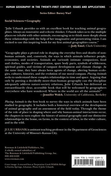 Placing Animals is the first book to survey the ways in which animals have been studied in geography. It includes both a historical overview of the development of animal geography and an assessment of the field today. Through the theme of the role of place in shaping where and why human-animal interactions occur, the chapters in turn explore the history of animal geography and our distinctive relationships in the home, on farms, in the context of labor, in the wider culture, and in the wild.