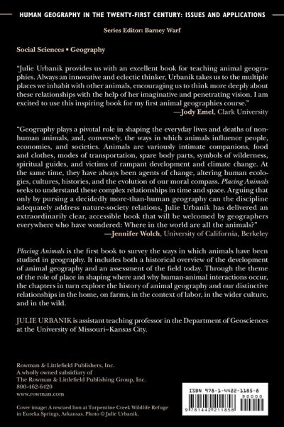 Placing Animals is the first book to survey the ways in which animals have been studied in geography. It includes both a historical overview of the development of animal geography and an assessment of the field today. Through the theme of the role of place in shaping where and why human-animal interactions occur, the chapters in turn explore the history of animal geography and our distinctive relationships in the home, on farms, in the context of labor, in the wider culture, and in the wild.