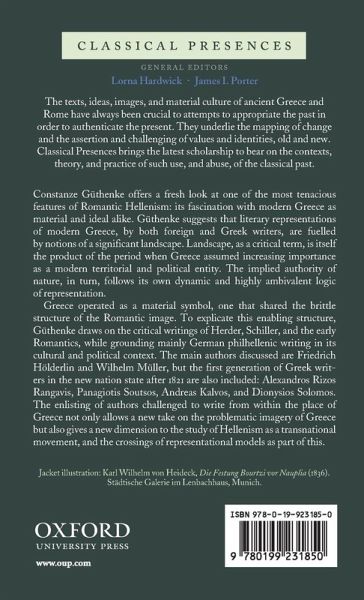 This volume is an investigation of literary representations of Greece in the period of Romanticism, encompassing the time in the 1820s when Greece became a territorial and political reality as a nation state. Constanze Guthenke explores the imaginative construction of the Greek nation in light of the literary strategies and constraints of Romantic aesthetics.