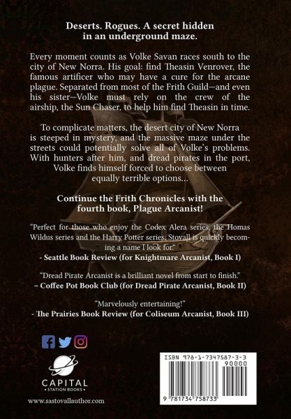 Every moment counts as Volke Savan races south to the city of New Norra. His goal: find Theasin Venrover, the famous artificer who may have a cure for the arcane plague. Separated from most of the Frith Guild-and even his sister-Volke must rely on the crew of the airship, the Sun Chaser, to help him find Theasin in time.