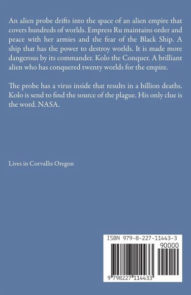 An alien probe drifts into the space of an alien empire that covers hundreds of worlds. Empress Ru maintains order and peace with her armies and the fear of the Black Ship. A ship that has the power to destroy worlds. It is made more dangerous by its commander. Kolo the Conquer. A brilliant alien who has conquered twenty worlds for the empire. The probe has a virus inside that results in a billion deaths. Kolo is send to find the source of the plague. His only clue is the word. NASA.