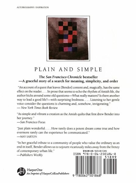 "I had an obsession with the Amish. Plan and simple. Objectively it made no sense. I, who worked hard at being special, fell in love with a people who valued being ordinary." So begins Sue Bender's story, the captivating and inspiring true story of a harried urban Californian moved by the beauty of a display of quilts to seek out and live with the Amish. Discovering lives shaped by unfamiliar yet comforting ideas about time, work, and community, Bender is gently coaxed to consider, "Is there another way to lead a good life?" Her journey begins in a New York men's clothing store. There she is spellbound by the vibrant colors and stunning geometric simplicity of the Amish quilts "spoke directly to me," writes Bender. Somehow, "they went straight to my heart." Heeding a persistent inner voice, Bender searches for Amish families willing to allow her to visit and share in there daily lives. Plain and Simple vividly recounts sojourns with two Amish families, visits during which Bender enters a world without television, telephone, electric light, or refrigerators; a world where clutter and hurry are replaced with inner quiet and calm ritual; a world where a sunny kitchen "glows" and "no distinction was made between the sacred and the everyday." In nine interrelated chapters--as simple and elegant as a classic nine-patch Amish quilt--Bender shares the quiet power she found reflected in lives of joyful simplicity, humanity, and clarity. The fast-paced, opinionated, often frazzled Bender returns home and reworks her "crazy-quilt" life, integrating the soul-soothing qualities she has observed in the Amish, and celebrating the patterns in the Amish, and celebrating the patterns formed by the distinctive "patches" of her own life. Charmingly illustrated and refreshingly spare, Plain and Simple speaks to the seeker in each of us.
