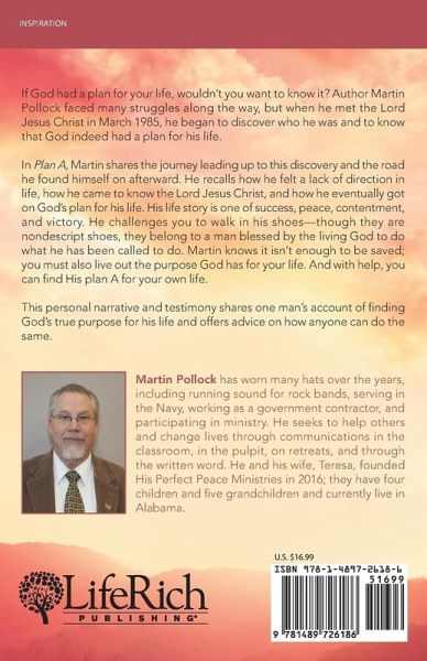 If God had a plan for your life, wouldn't you want to know it? Author Martin Pollock faced many struggles along the way, but when he met the Lord Jesus Christ in March 1985, he began to discover who he was and to know that God indeed had a plan for his life. In Plan A, Martin shares the journey leading up to this discovery and the road he found himself on afterward. He recalls how he felt a lack of direction in life, how he came to know the Lord Jesus Christ, and how he eventually got on God's plan for his life. His life story is one of success, peace, contentment, and victory. He challenges you to walk in his shoes-though they are nondescript shoes, they belong to a man blessed by the living God to do what he has been called to do. Martin knows it isn't enough to be saved; you must also live out the purpose God has for your life. And with help, you can find His plan A for your own life. This personal narrative and testimony shares one man's account of finding God's true purpose for his life and offers advice on how anyone can do the same.