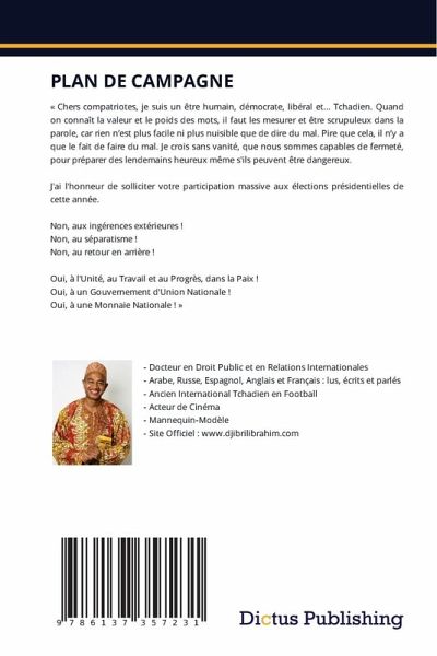 « Chers compatriotes, je suis un être humain, démocrate, libéral et... Tchadien. Quand on connaît la valeur et le poids des mots, il faut les mesurer et être scrupuleux dans la parole, car rien n'est plus facile ni plus nuisible que de dire du mal. Pire que cela, il n'y a que le fait de faire du mal. Je crois sans vanité, que nous sommes capables de fermeté, pour préparer des lendemains heureux même s'ils peuvent être dangereux. J'ai l'honneur de solliciter votre participation massive aux élections présidentielles de cette année.Non, aux ingérences extérieures !Non, au séparatisme !Non, au retour en arrière !Oui, à l'Unité, au Travail et au Progrès, dans la Paix !Oui, à un Gouvernement d'Union Nationale !Oui, à une Monnaie Nationale ! »