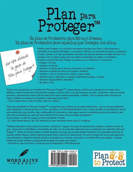 Planificar para Proteger no se trata de lo que tenemos que hacer para llevar a cabo programas y actividades, ni de imponer dificultades a su personal y voluntarios. La prevención de abusos y la protección de niños y jóvenes no es algo que tengamos que hacer, sino algo que tenemos el privilegio de hacer. Es un privilegio crear un entorno seguro para que nuestras comunidades nos confíen a sus familiares. Al poner en práctica Plan para Proteger, sus esfuerzos son un ministerio en sí mismo para:proteger a los niños proteger a los jóvenes demostrar el cuidado que se tiene con el personal y los voluntarios demostrar el cuidado que tiene con los padres y familiares fortalecer y nutrir la curación de las víctimas y supervivientes demostrar gracia, restauración y acogida al delincuente que llega a su iglesia demostrar responsabilidad e integridad y dar gloria a Dios