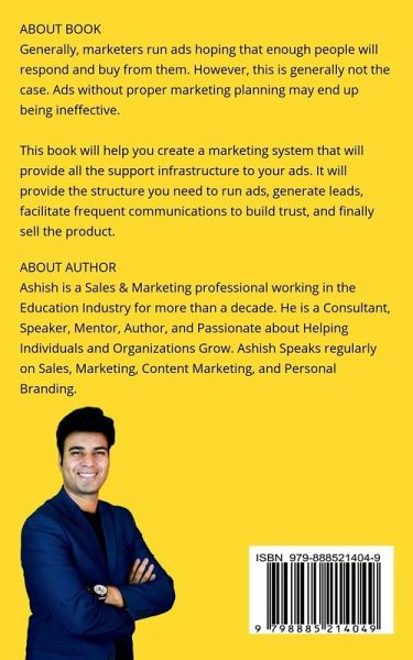 Generally, marketers run ads hoping that enough people will respond and buy from them. However, this is generally not the case. Ads without proper marketing planning may end up being ineffective. This book will help you create a marketing system that will provide all the support infrastructure to your ads. It will provide the structure you need to run ads, generate leads, facilitate frequent communications to build trust, and finally sell the product. The system will also help you to sell repeatedly to the same buyer, and then create referrals and a word-of-mouth buzz.