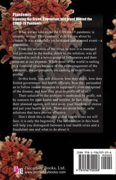 What we are told about the COVID-19 pandemic is insanely wrong! This pandemic didn't come about by chance. It was a carefully orchestrated and planned event-a plandemic. From the selection of the virus, to how it is managed and promoted in the media, down to the solution, was all designed to enrich a select group of billionaires and their minions at our expense. While most of the world is reeling in a financial crisis because of the mismanagement of the pandemic, the perpetuators are cashing in on billions in profits. In this book, you will discover how they did it, how they fooled government and health officials, how they persuaded us to follow insane measures to supposedly slow the spread of the disease, and how they plan to profit off of us. Their solution to the problem is motivated by profit, not by concern for your health and welfare. In fact, following their planned agenda will take away your freedom of choice and put your health at risk. There are much better, safer solutions that have proven effective. Don't think this is the last global health crisis we will face, it is only the beginning. The information in this book will help you distinguish between a real health crisis and a fraudulent one and what to do about it.