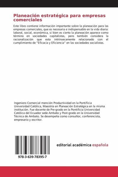 Este libro contiene información importante sobre la planeación para las empresas comerciales, que es necesaria e indispensable en la vida diaria: laboral, social, económica, si bien es cierto la planeación aparece como término en sociedades capitalistas, pero también considera la racionalización que esta intrínsecamente relacionado con el cumplimiento de "Eficacia y Eficiencia" en las sociedades socialistas.