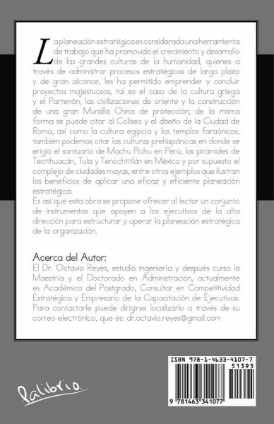 De Octavio Reyes La planeación estratégica es considerada una herramienta de trabajo que ha promovido el crecimiento y desarrollo de las grandes culturas de la humanidad, quienes a través de administrar procesos estratégicos de largo plazo y de gran alcance, les ha permitido emprender y concluir proyectos majestuosos, tal es el caso de la cultura griega y el Partenón, las civilizaciones de oriente y la construcción de una gran Muralla China de protección; de la misma forma se puede citar al Coliseo y el diseño de la Ciudad de Roma, así como la cultura egipcia y los templos faraónicos, también podemos citar las culturas prehispánicas en donde se erigió el santuario de Machu Pichu en Perú, las pirámides de Teotihuacán, Tula y Tenochtitlán en México y por supuesto el complejo de ciudades mayas, entre otros ejemplos que ilustran los beneficios de aplicar una eficaz y eficiente planeación estratégica. Es así que esta obra se propone ofrecer al lector un conjunto de instrumentos que apoyen a los ejecutivos de la alta dirección para estructurar y operar la planeación estratégica de la organización.