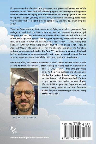 Do you remember the first time you were on a plane and looked out of the window? As the plane took off, elevating higher, the buildings on the ground seemed to shrink, changing your perspective on life. Perhaps you did not have the spiritual insight you may possess now, but maybe something inside made you wonder, "Where does this world come from, and how do I claim my place in it?" Time has flown since my first memories of flying as a child. I graduated from college, moved back to New York City, met and married my dream girl, adopted her son, and relocated to Florida after I was laid off. Life was full of the usual ups and downs, and we grew spiritually, based our marriage on love, and lived in what we believe is the right order - God, family, then business. Although there were cloudy days, the sun shined a lot. Then, on April 9, 2018, my life changed forever. The absolute love of my life, Christine, suffered an unexpected stroke. On April 19, my Queen was gone. This book isn't a tearjerker or an autobiography but rather a manual created for you from my experience - a manual that will take your life to new heights. For many of us, the world has become a place where we don't have a millisecond to think for ourselves, often leaving us feeling lost or overwhelmed. That is why I wrote this straightforward guide to help you evaluate and change your life for the better. I invite you to join me on the journey of Planestorming! It's time to get to work and make the rest of your life the BEST of your life! Together, we will address many areas of life and formulate a plan for your breakthrough! Are you ready for the challenge?