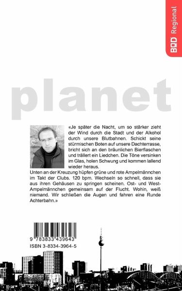"planet berlin" ist Roman und Reiseführer gleichermaßen. Mit Spannung, Witz, und sprachlichem Geschick führt der Autor durch die Hauptstadt und lädt sein Publikum auf einen literarischen Raumflug durch die Atmosphäre Berlins ein. Der Leser schließt die Augen und fühlt die Geschwindigkeit der Stadt. Die Beats des Molochs lassen seine Ohren glühen. Die Gerüche der Vergangenheit prallen auf die postmodernen Fassaden der Neuzeit. Er spürt die Spannung, die Berlin wie ein Lichtbogen umschlingt und deren Enden zärtlich in den sandigen Boden eindringen. Ost und West scheinen überwunden zu sein. Vereinen sich zu einem neuen Gefühl, das Wahnsinn heißt. Das Freiheit bedeutet.Barbarisch. Sympathisch. Aufbruch und Abbruch.