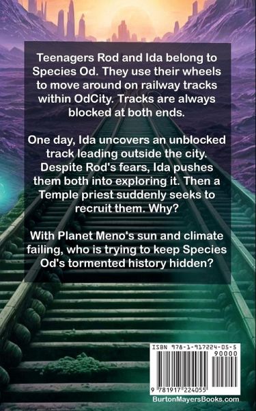 Teenagers Rod and Ida belong to Species Od. They use their wheels to move around on railway tracks within OdCity. Tracks are always blocked at both ends. One day, Ida uncovers an unblocked track leading outside the city. Despite Rod's fears, Ida pushes them both into exploring it. Then a Temple priest suddenly seeks to recruit them. Why? With Planet Meno's sun and climate failing, who is trying to keep Species Od's tormented history hidden?