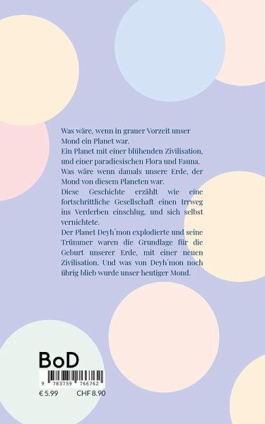Was wäre, wenn in grauer Vorzeit unser Mond ein Planet war. Ein Planet mit einer blühenden Zivilisation, und einer paradiesischen Flora und Fauna. Was wäre wenn damals unsere Erde, der Mond von diesem Planeten war. Diese Geschichte erzählt wie eine fortschrittliche Gesellschaft einen Irrweg ins Verderben einschlug, und sich selbst vernichtete. Der Planet Deyh¿mon explodierte und seine Trümmer waren die Grundlage für die Geburt unserer Erde, mit einer neuen Zivilisation. Und was von Deyh¿mon noch übrig blieb wurde unser heutiger Mond.