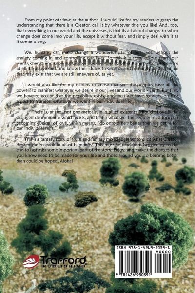 From my point of view as the author, I would like for my readers to grasp the understanding that there is a Creator, call It by whatever title you like, and that everything in our world and the universes, is that It's all about change. So when change does come into your life, accept it without fear and simply deal with it as it comes along. We, humans, can make change a wonderful part of our lives, without the anxiety coming in and controlling our lives. So, this is a story of our fears, or wants, change, knowing Creator does exist, as do other Beings which, are aware of all the above said, and know their duties to Creator and humanity, and all of life that may exist that we are still unawara of, as yet. I would also like for my readers to know that we, the peoples have all the powers to manifest whatever we desire in our lives and our world - Earth! But first, we have to accept that the possibility exists, and then we have to work on that aspect to manifest whatever we want in our individual life! There is at the least, one major rule in all of exsistence, though: Love is the strongest denominator which exists, and that is what we, the peoples, must focus on becomming - Beings of love, which means, "do onto others better than we desire for our individual selfs!" This is a fantasy story of truth and fantasy mixed together to elicit what Creator desired me to evok in all humanity. This must be read from begginning to the end to to not miss some important part of the story. Enjoy, and make the changes that you know need be made for your life and those around you to become better than could be hoped. Aloha!
