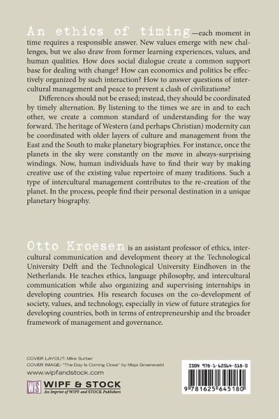 An ethics of timing--each moment in time requires a responsible answer. New values emerge with new challenges, but we also draw from former learning experiences, values, and human qualities. How does social dialogue create a common support base for dealing with change? How can economics and politics be effectively organized by such interaction? How to answer questions of intercultural management and peace to prevent a clash of civilizations? Differences should not be erased; instead, they should be coordinated by timely alternation. By listening to the times we are in and to each other, we create a common standard of understanding of the way forward. The heritage of Western (and perhaps Christian) modernity can be coordinated with older layers of culture and management from the East and the South to make planetary biographies. For instance, once the planets in the sky were constantly on the move in always-surprising windings. Now, human individuals have to find their way by making creative use of the existing value repertoire of many traditions. Such a type of intercultural management contributes to the re-creation of the planet. In the process, people find their personal destination in a unique planetary biography.