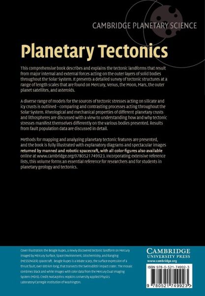 This book describes the tectonic landforms resulting from major internal and external forces acting on the outer layers of solid bodies throughout the Solar System. It presents a detailed survey of tectonic structures at a range of length scales found on Mercury, Venus, the Moon, Mars, the outer planet satellites, and asteroids. A diverse range of models for the sources of tectonic stresses acting on silicate and icy crusts is outlined, comparing processes acting throughout the Solar System. Rheological and mechanical properties of planetary crusts and lithospheres are discussed to understand how and why tectonic stresses manifest themselves differently on various bodies. Results from fault population data are assessed in detail. The book provides methods for mapping and analysing planetary tectonic features, and is illustrated with diagrams and spectacular images returned by manned and robotic spacecraft. It forms an essential reference for researchers and students in planetary geology and tectonics.