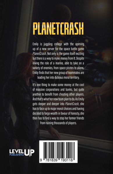 Emily is juggling college with the opening up of a new server for the space battle game PlanetCrash. Not only is the game itself exciting but there is a way to make money from it. Despite loving the role of a marine, able to take on a variety of enemies, from space pirates to aliens, Emily finds that her new group of teammates are leading her into dubious moral territory. It's one thing to make some money at the cost of massive corporations and banks, but quite another to benefit from cheating other players. And that's what her new team plan to do. As Emily gets deeper and deeper into PlanetCrash, she has to face up to major moral choices and having decided to forgo wealth in favour of honesty, she then has to find a way to stop her former friends from ruining thousands of players.
