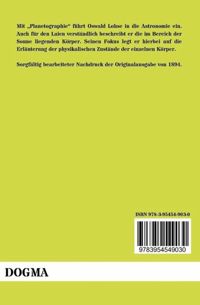 Mit Planetographie führt Oswald Lohse in die Astronomie ein. Auch für den Laien verständlich beschreibt er die im Bereich der Sonne liegenden Körper. Seinen Fokus legt er hierbei auf die Erläuterung der physikalischen Zustände der einzelnen Körper.