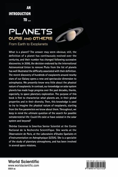 What is a planet? The answer seems obvious, but nonetheless the definition of a planet has continuously evolved over the centuries, and their number has changed following successive discoveries. The decision endorsed by the International Astronomical Union to remove Pluto from the list of planets in 2006 well illustrates the difficulty associated with their definition. The recent discovery of hundreds of exoplanets around nearby stars of our Galaxy opens a new and spectacular dimension to astrophysics. We presently know very little about the physical nature of exoplanets. In contrast, our knowledge of Solar System planets has made huge progress over the past decades, thanks, especially, to space planetary exploration. The purpose of this book is first to characterize what planets are, in their global properties and in their diversity. Then, this knowledge is used to try to imagine the physical nature of exoplanets, starting from the few parameters we know about them. Throughout this book, as we explore the subject, we keep in mind the ultimate question of the search for possible extraterrestrial life: Could life exist or have existed in the Solar System and beyond? Th r se Encrenaz is Emeritus Senior Scientist at the Centre National de la Recherche Scientifique. She works at the Observatoire de Paris, at the Laboratoire d'Etudes Spatiales et d'Instrumentation en Astrophysique (LESIA). She is a specialist of the study of planetary atmospheres, and has been involved in several space missions.
