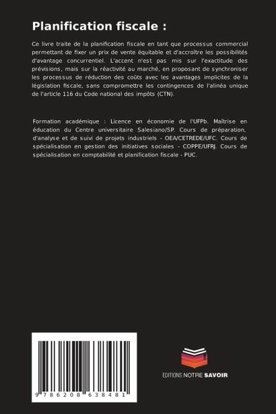 Ce livre traite de la planification fiscale en tant que processus commercial permettant de fixer un prix de vente équitable et d'accroître les possibilités d'avantage concurrentiel. L'accent n'est pas mis sur l'exactitude des prévisions, mais sur la réactivité au marché, en proposant de synchroniser les processus de réduction des coûts avec les avantages implicites de la législation fiscale, sans compromettre les contingences de l'alinéa unique de l'article 116 du Code national des impôts (CTN).