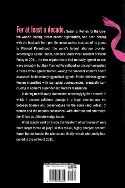 The full, up-close story of the battle between Susan G. Komen for the Cure and Planned Parenthood from the woman at the center of the explosive media firestorm of early 2012, Karen Handel, former SVP of Public Policy at Komen. In 2011, Susan G. Komen for the Cure was growing weary of the “pink” being tarnished by its health grants to Planned Parenthood (PPH), whose many controversies were fueling backlash against Komen. They wanted to remove themselves from the pro-life/abortion debate and made what they thought was a rational, reasonable decision: seek neutral ground in the culture war by severing ties with Planned Parenthood—and in turn, eliminate a major headache while opening a new, robust fund-raising channel. Karen Handel, the organization’s Senior Vice President of Public Policy, was tasked with identifying options to disengage. In November, the Komen management and board decided to move forward. Komen believed that they and PPH had made a “gentle ladies” pact, agreeing to part ways amicably and acknowledging that a media firestorm was in no one’s best interest. Yet, six weeks later, PPH unleashed a media campaign so viral and so seamlessly executed that it must have been in the works for some time. PPH attacked Komen against the backdrop of the Obama administration’s clash with the Catholic Church over contraception. After just three days, following hysterical cries that “Komen was abandoning women,” Komen capitulated and reversed course. Handel—a lifelong pro-life Republican who was raised Catholic—was immediately made the target. She resigned within days of Komen’s reversal. Liberals called her a right-wing Trojan horse. The pro-life community hailed her as a hero. She insists she is neither. Why did Planned Parenthood attack? Was Komen simply a pawn in something bigger? In this book, Karen Handel finally speaks.