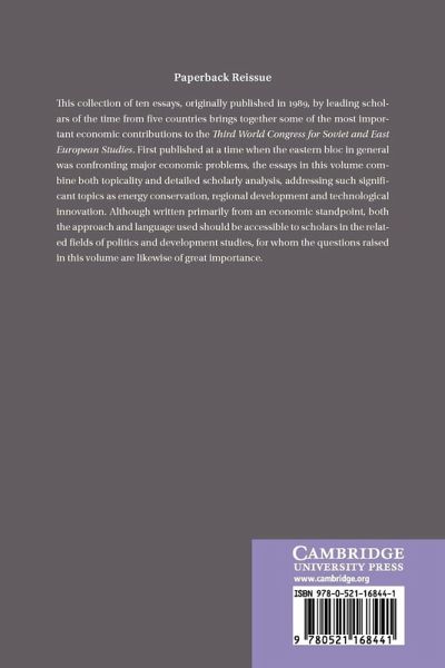 This 1989 collection of ten essays, originally published in 1989, by leading scholars of the time from five countries brings together some of the most important economic contributions to the Third World Congress for Soviet and East European Studies. First published at a time when the eastern bloc in general was confronting major economic problems, the essays in this volume combine both topicality and detailed scholarly analysis, addressing such significant topics as energy conservation, regional development and technological innovation. Although written primarily from an economic standpoint, both the approach and language used should be accessible to scholars in the related fields of politics and development studies, for whom the questions raised in this volume are likewise of great importance.